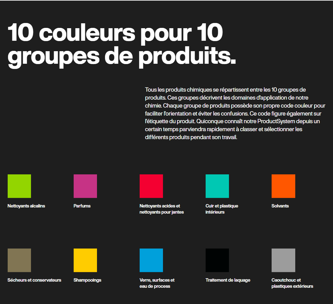 Koch‑Chemie est un fournisseur de systèmes proposant des produits parfaitement coordonnés. Notre ProductSystem rassemble et organise notre gamme. Inspirée de la classification périodique des éléments, la conception du système s’organise autour du cœur de l’entreprise: la chimie. La classification périodique présente l’ensemble des éléments chimiques connus sous la forme d’un système global fournissant des informations multiples. Notre ProductSystem vise le même objectif.