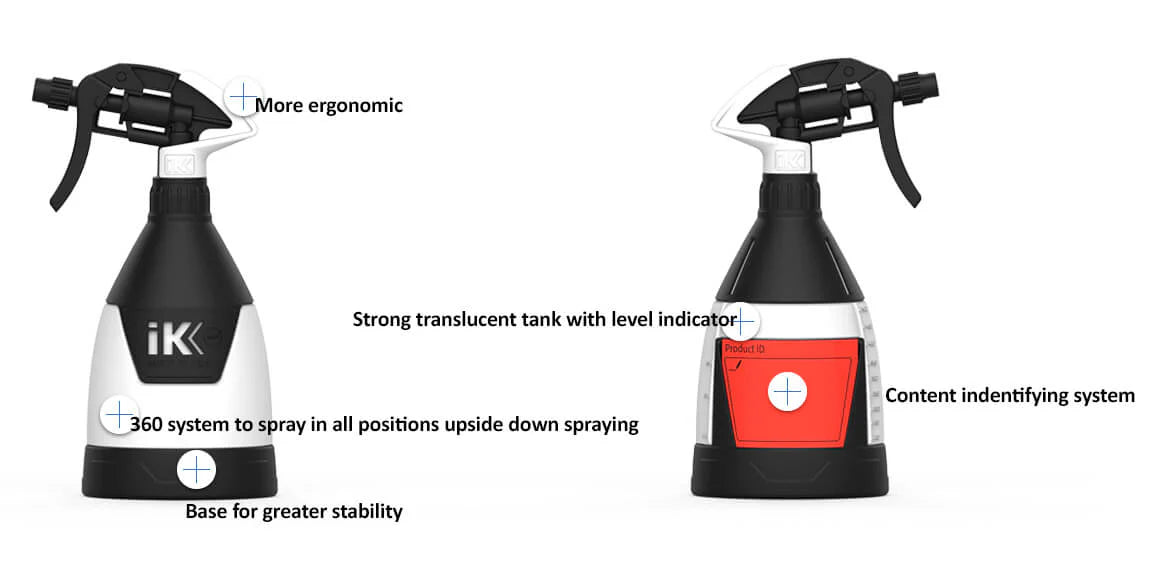 Le pulvérisateur à gâchette IK MULTI TR MINI 360 apporte une solution de pulvérisation professionnelle assurant des résultats optimaux dans un large éventail de secteurs tels que le nettoyage et la désinfection, l’automobile et le détaillage de véhicules (detailing), nettoyage de vélos, le contrôle des virus, des nuisibles et des épidémies, le bricolage (DIY) ou les applications industrielles et la climatisation (HVAC).